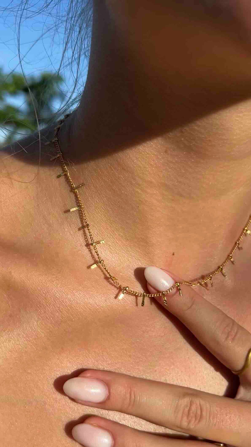 Sól, chlor i pot mogą z czasem osadzać się na biżuterii. Po intensywnym dniu po prostu przemyj ją wodą z łagodnym mydłem i osusz miękką ściereczką.