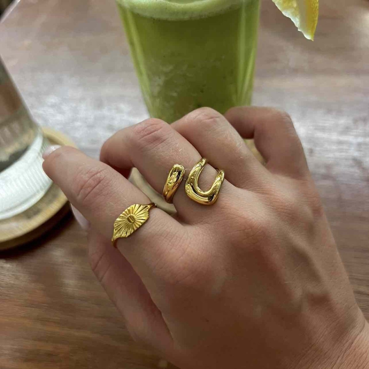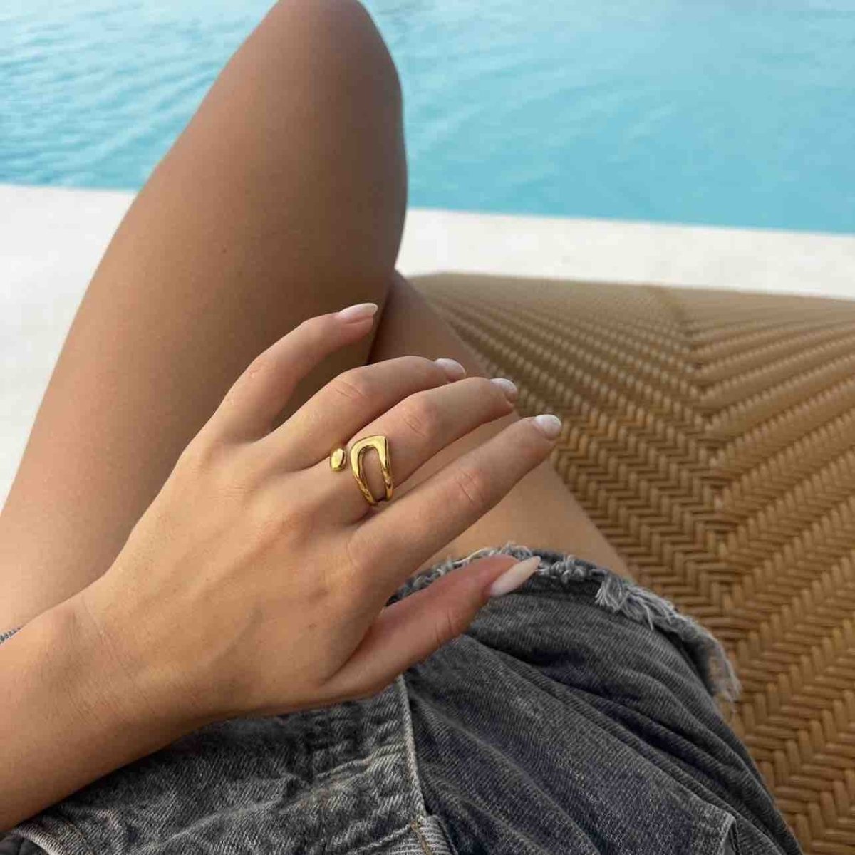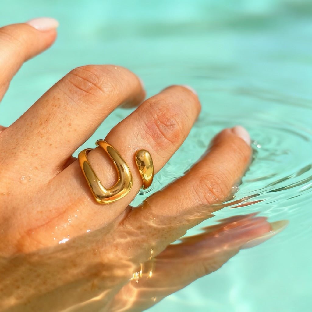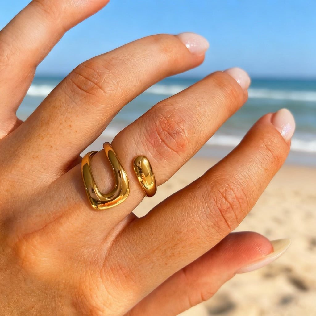 Apat: złoty pierścionek podkreślający smukłość palców - Pearlippines Biżuteria