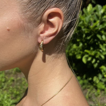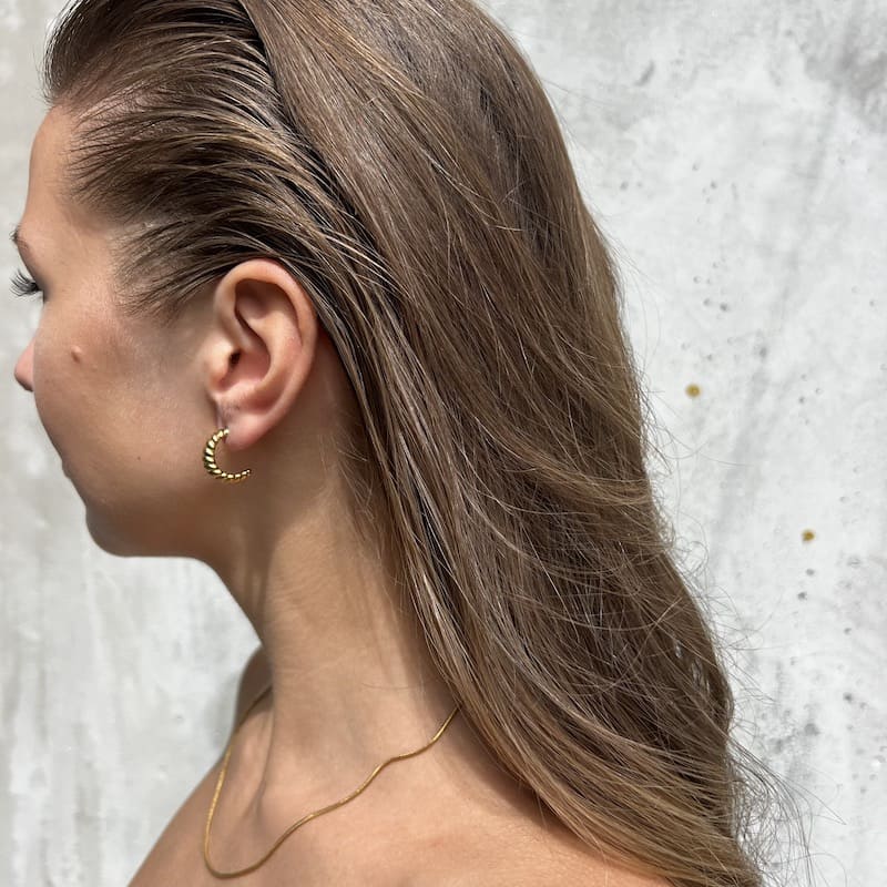 Kolczyki Cocoro to subtelne akcesoria, które dodają odrobinę finezji każdej stylizacji. Ich unikalny wzór, nawiązujący do kształtu croissanta, łączy elegancję z odrobiną słodkiego uroku.