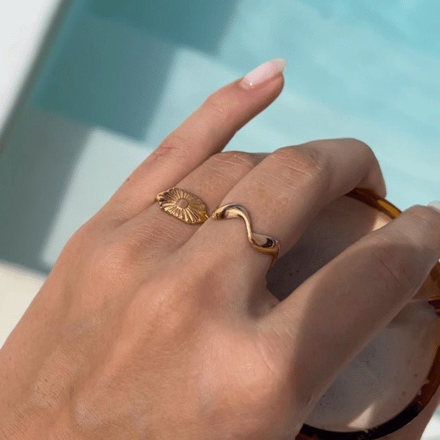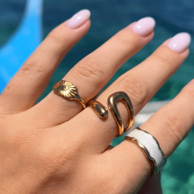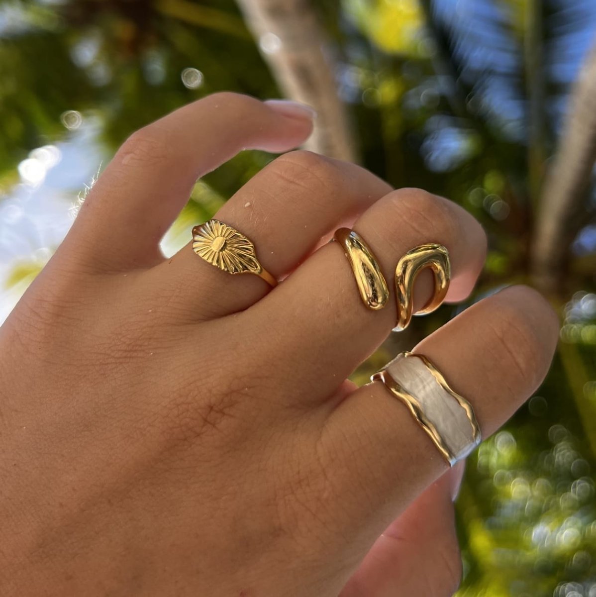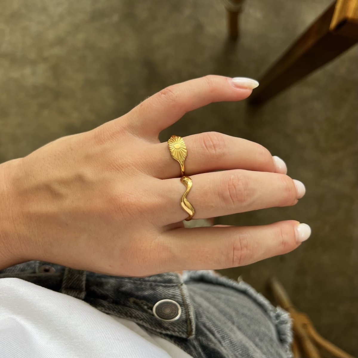 Poznaj Emmit – wyjątkowy regulowany pierścionek w kolorze złotym, który przyciąga wzrok unikalnym designem.