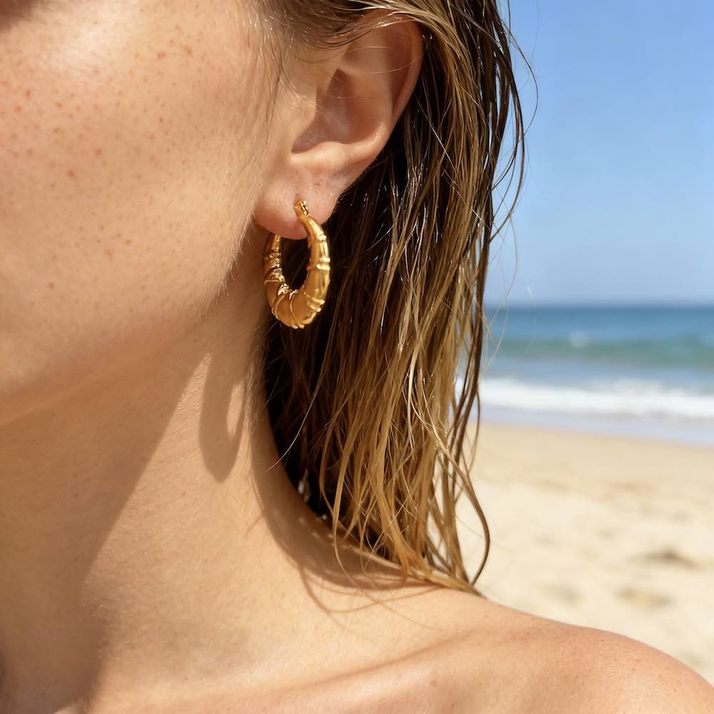 Sól, chlor i pot mogą z czasem osadzać się na biżuterii. Po intensywnym dniu po prostu przemyj ją wodą z łagodnym mydłem i osusz miękką ściereczką.
