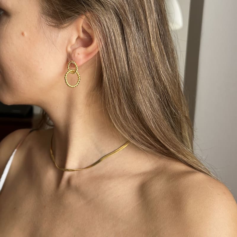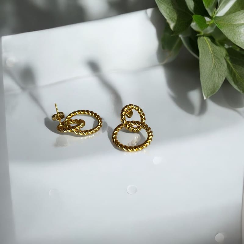 Skręcone obręcze, które przeplatają się ze sobą, tworzą dynamiczny i elegancki wygląd.