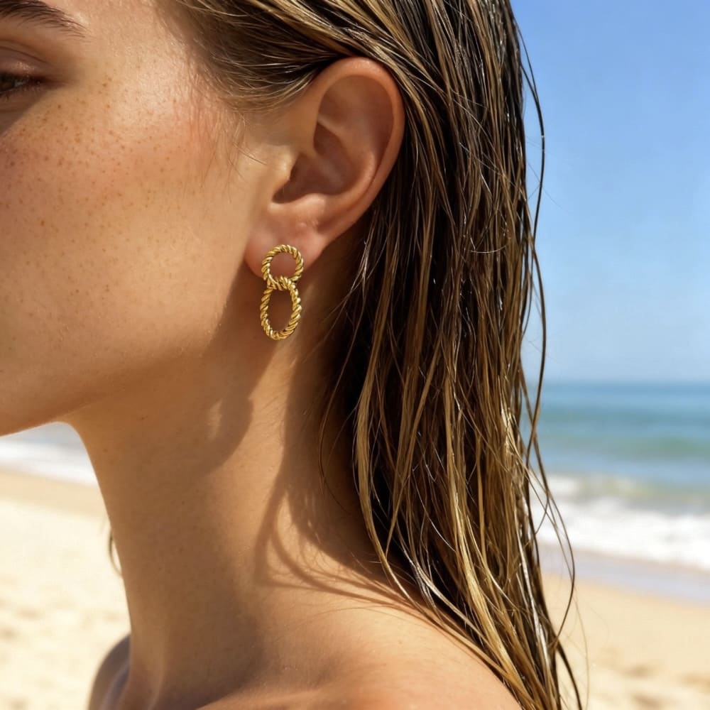 Sól, chlor i pot mogą z czasem osadzać się na biżuterii. Po intensywnym dniu po prostu przemyj ją wodą z łagodnym mydłem i osusz miękką ściereczką.