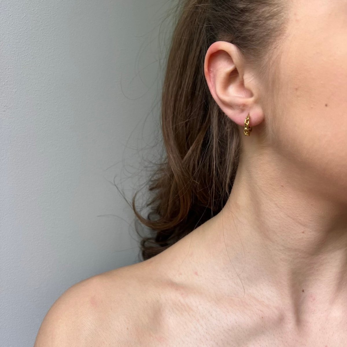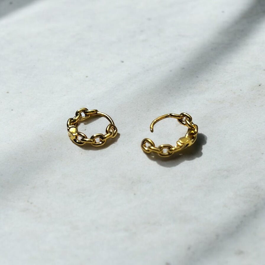 Mini Links to kolczyki inspirowane kształtem łańcucha – lekkie, kobiece i nowoczesne. Ich subtelna forma przyciąga wzrok dzięki detalicznemu splotowi i połyskującemu złotu.