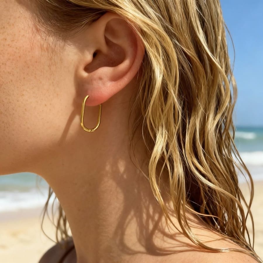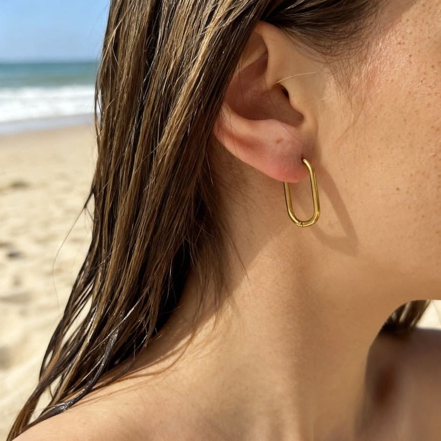 Złote Palawan Bold to powiększona wersja klasycznych kolczyków Palawan – jeszcze bardziej wyraziste i efektowne.