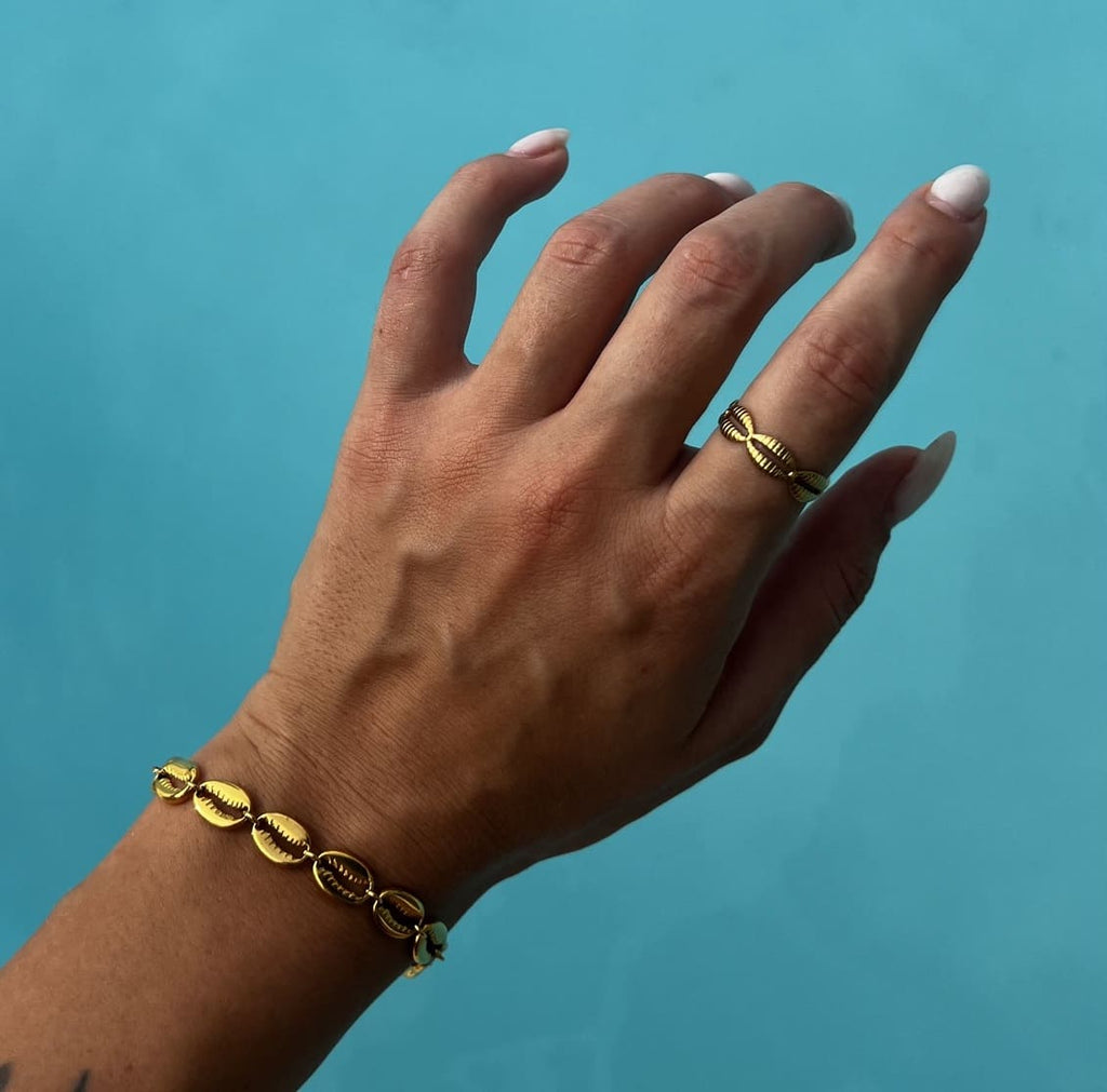 Dodaj odrobinę egzotyki do swojej biżuterii z pierścionkiem Cowrie.