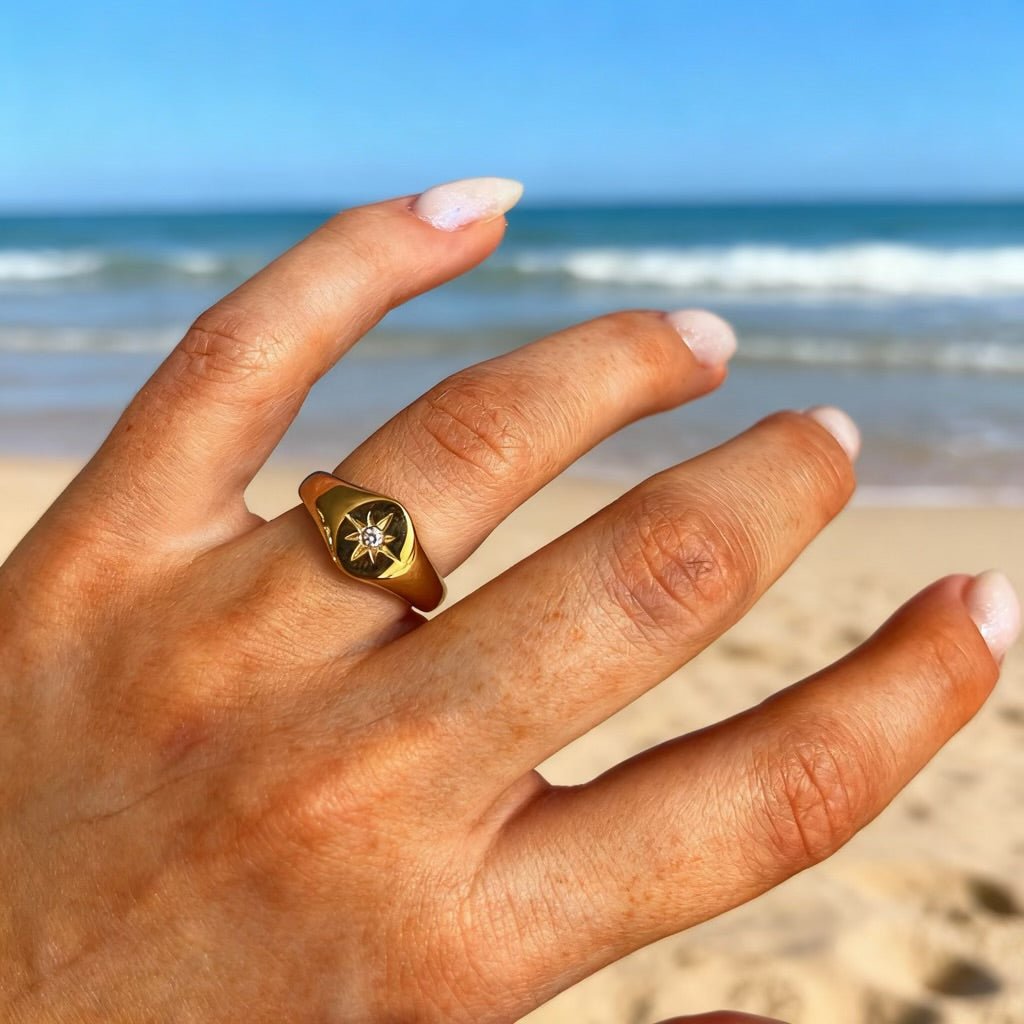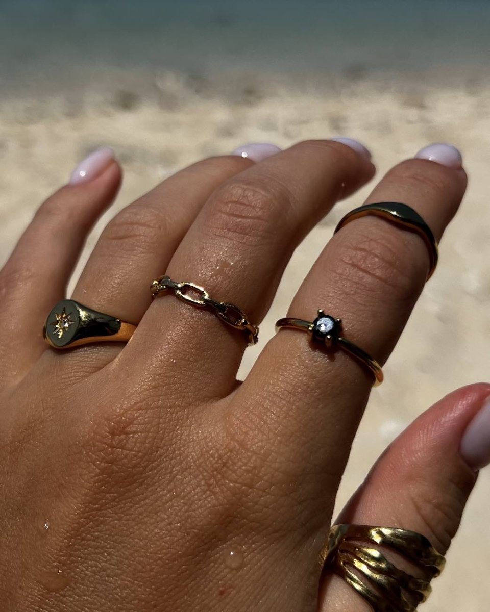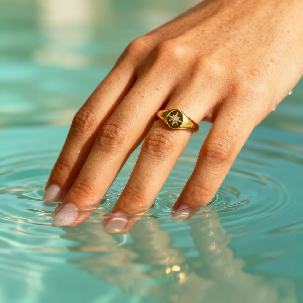 Sól, chlor i pot mogą z czasem osadzać się na biżuterii. Po intensywnym dniu po prostu przemyj ją wodą z łagodnym mydłem i osusz miękką ściereczką.